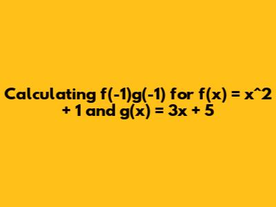 In summary, we have successfully determined that for the functions f(x)=x2+1f(x) = x^2 + 1 and g(x)=3x+5g(x) = 3x + 5, the value of f(βˆ’1)g(βˆ’1)f(-1)g(-1) is 4. This was achieved by first evaluating f(βˆ’1)f(-1), which resulted in 2, and then evaluating g(βˆ’1)g(-1), which also resulted in 2. Finally, we multiplied these two values together: 2imes2=42 imes 2 = 4. This exercise underscores the importance of understanding function notation, the order of operations, and the careful handling of negative numbers in algebraic computations. These foundational skills are crucial for tackling more complex mathematical challenges. The journey through evaluating functions can lead to many interesting avenues. For instance, you might explore what happens if you calculate f(g(βˆ’1))f(g(-1)) or g(f(βˆ’1))g(f(-1)), which are examples of composite functions. Understanding how to compose functions is a significant step in algebra and calculus. You could also explore the values of f(x)f(x) and g(x)g(x) for different input values of xx to see how their outputs change. Graphing these functions can provide a visual representation of their behavior and help you understand where they intersect or how their values relate at various points. For further exploration into the fascinating world of functions and their applications, I recommend checking out resources like Khan Academy's extensive library on algebra, which offers free lessons and practice exercises on function evaluation, composition, and much more. You can find them by searching for "Khan Academy algebra functions". Another excellent resource for understanding mathematical concepts deeply is Brilliant.org, which provides interactive problem-solving courses that can significantly enhance your grasp of these topics through engaging challenges. Exploring these resources will undoubtedly deepen your understanding and appreciation for the power and beauty of mathematical functions.