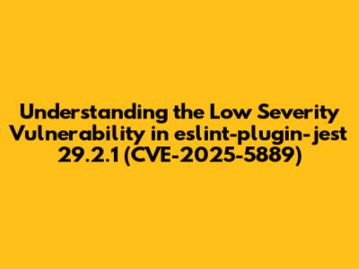 In the realm of software development, maintaining code quality and security is paramount. Vulnerability scanning plays a crucial role in identifying potential weaknesses that could be exploited. This article delves into a low-severity vulnerability, CVE-2025-5889, detected in eslint-plugin-jest-29.2.1.tgz, shedding light on its nature, impact, and potential remediation strategies. We'll break down the technical jargon and provide a comprehensive understanding for developers and security enthusiasts alike.