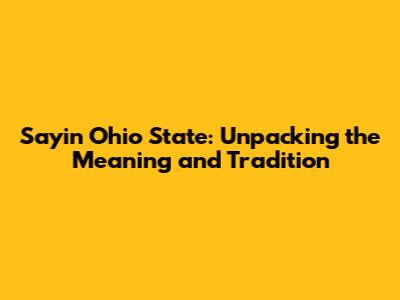 Sayin' Ohio State: Unpacking The Meaning And Tradition